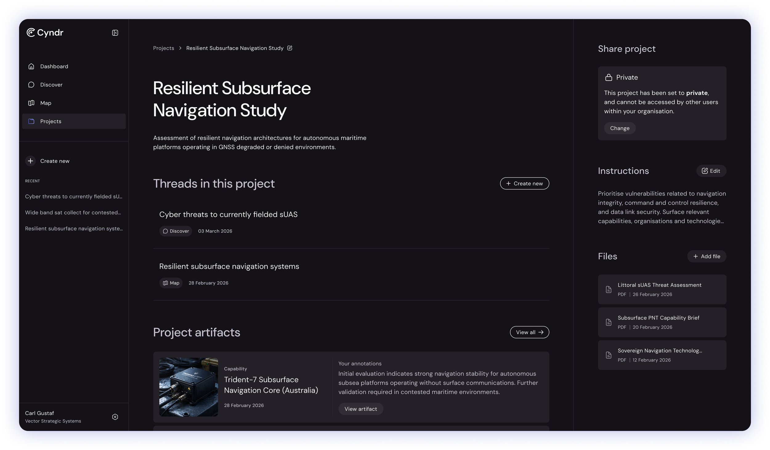 Cyndr is a capability intelligence platform that enables defence and national security organisations to discover, evaluate, and monitor emerging technologies across the innovation ecosystem.