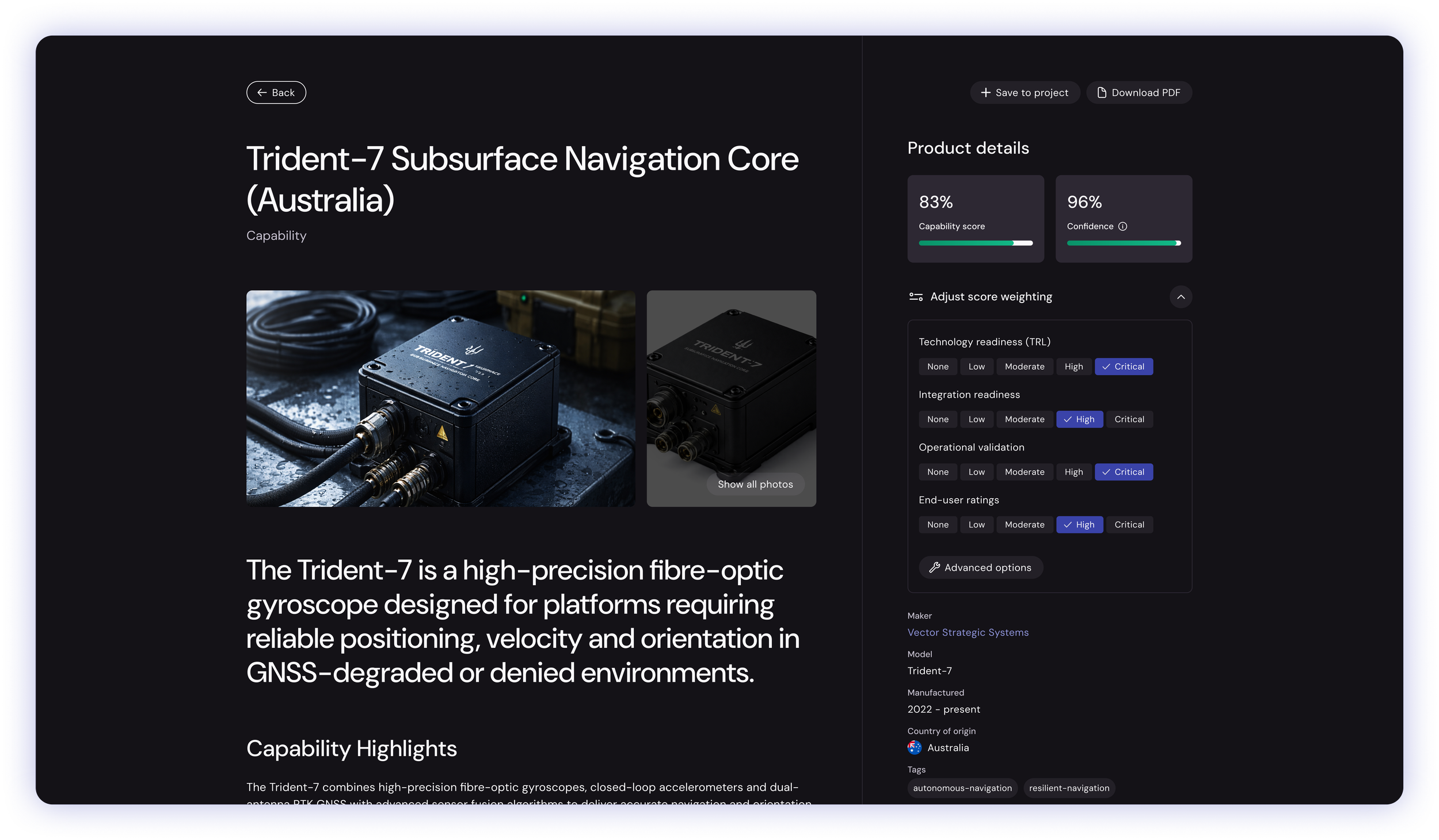 Compare technologies and capability options using structured intelligence. Cyndr enables consistent evaluation of technologies against operational needs, capability priorities, and ecosystem activity.